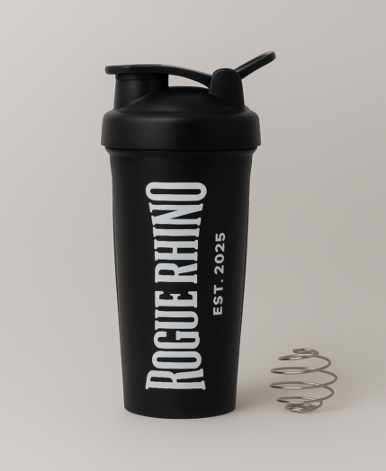 Meet the RhinoFuel Bottle in Bolt Blue – your ultimate training companion built for serious lifters and everyday movers. With a bold monochrome finish and signature “ROGUE RHINO EST. 2025” vertical graphic, this shaker blends rugged function with clean Rogue style. The easy-flip spout, leak-proof seal, and included mixing ball ensure smooth shakes anytime, anywhere – no clumps, no excuses.
