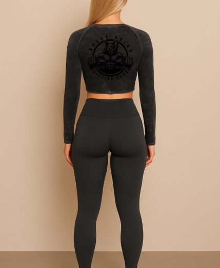 • RhinoEdge Zip-Up Crop – Charcoal Grey Acid Wash