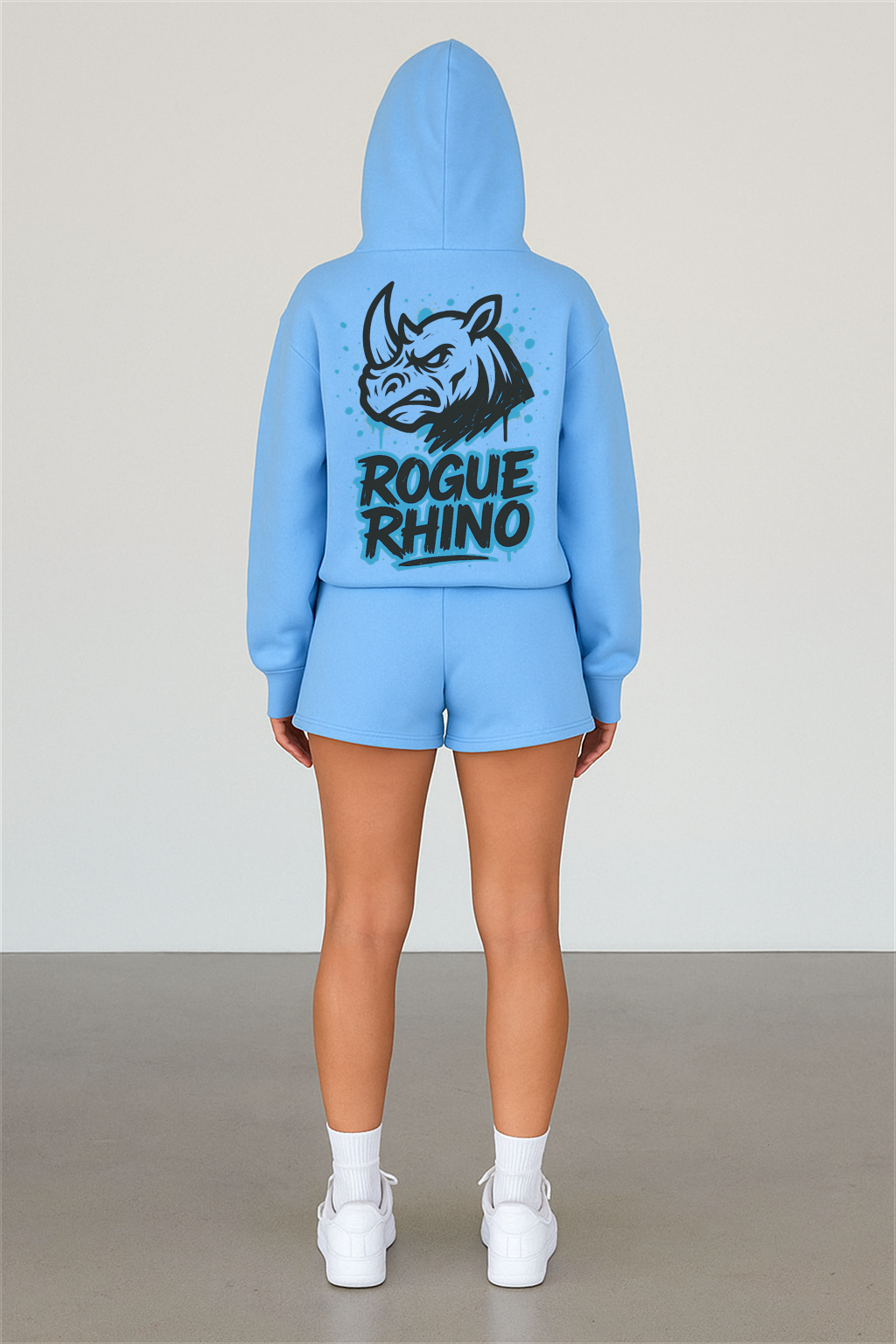 • Oversized back print: fierce rhino head + graffiti-style “ROGUE RHINO” lettering
