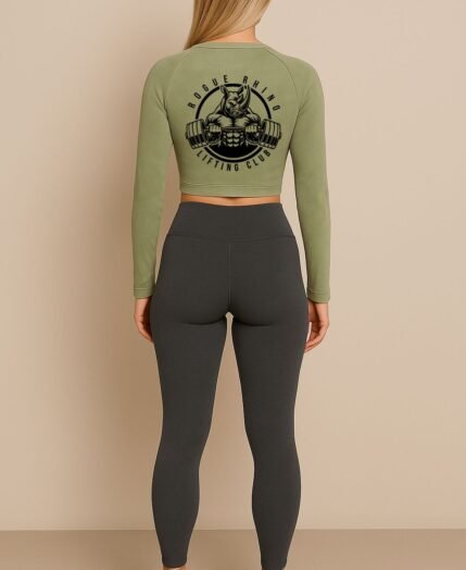 RhinoEdge Zip-Up Crop – Army Green Acid Wash