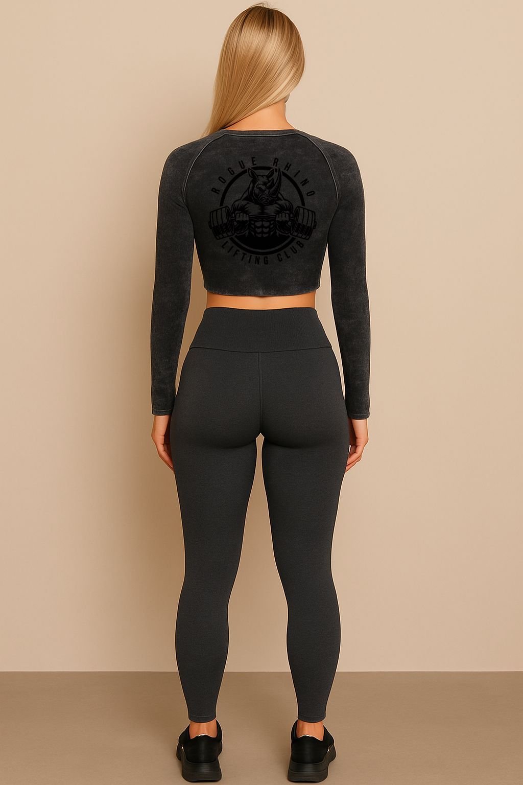 RhinoEdge Zip-Up Crop – Charcoal Grey Acid Wash