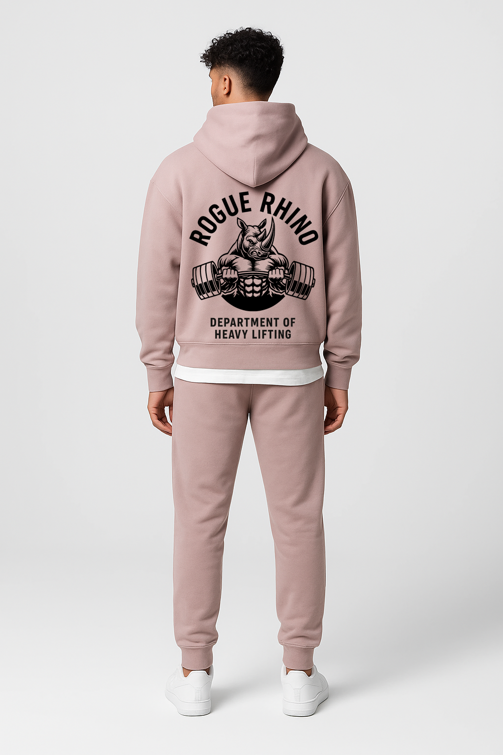 Join the club — the Lifting Club. Whether you’re warming up, cooling down, or making a statement on the street, “The Chief” Hoodie in Muted Mauve in delivers next-level comfort with power-packed style. Featuring the bold “ROGUE RHINO Lifting Club” chest print and our signature “Department of Heavy Lifting” graphic on the back, this is gym wear redefined.